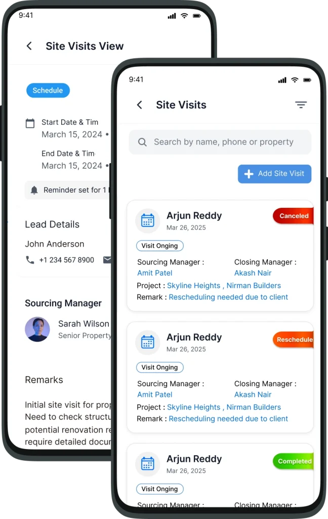 Buildesk’s site visit management helps sales teams and brokers plan, schedule, and track visits with ease. Automated reminders reduce no-shows, while real-time updates and visit logs provide complete visibility. This improves coordination, enhances customer experience, and boosts conversion rates.