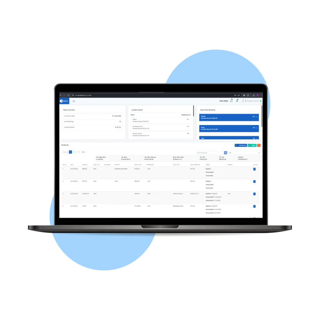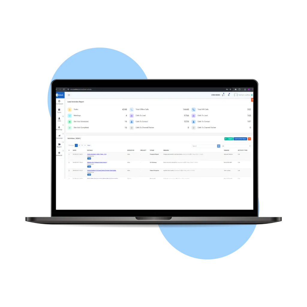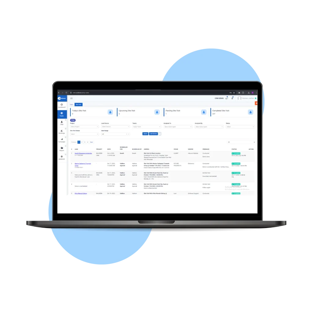 - Track agent’s performance metrics like calls, emails, meetings & site visits.