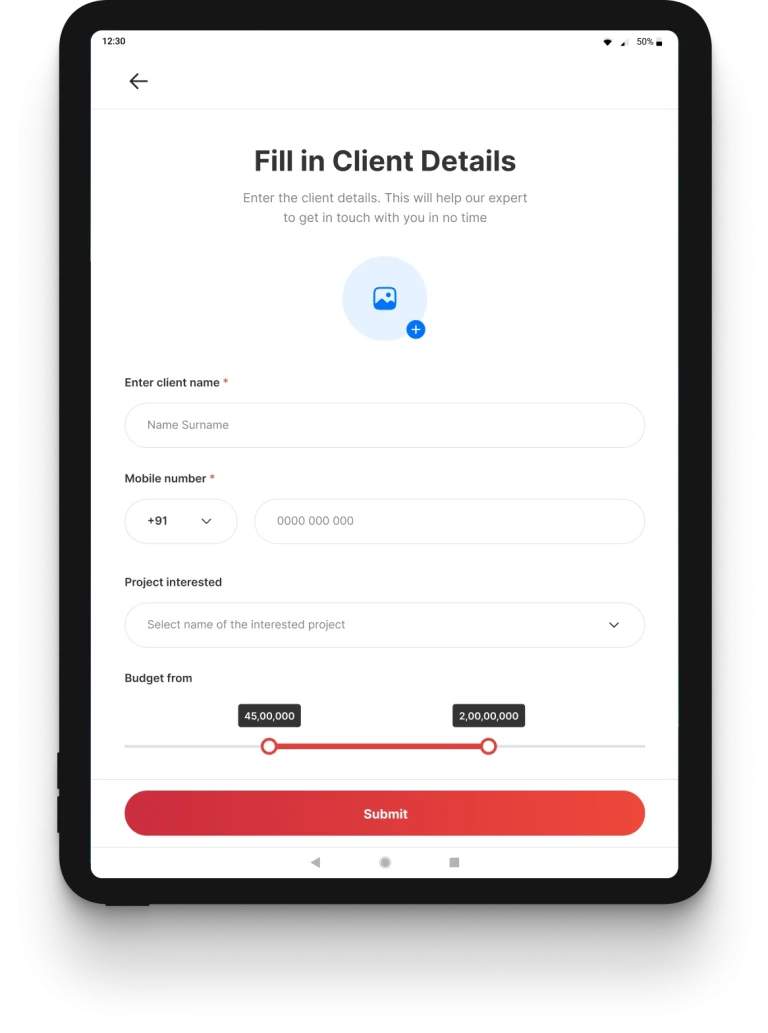 - Instantly capture visitor details (Name, Phone, Purpose, Project Interest)